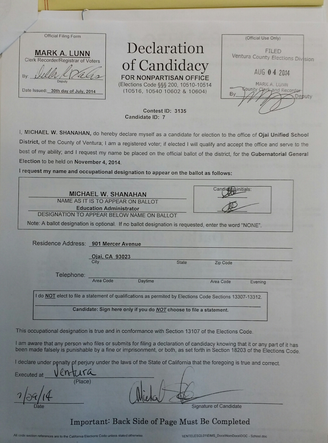 I am running for the Ojai Unified School District Board to use my experience in education to help my new home.